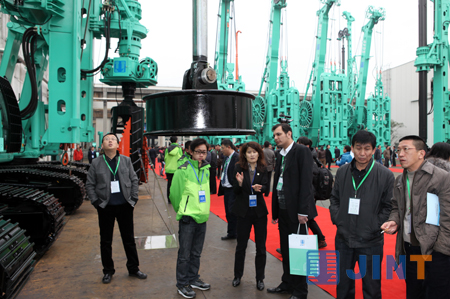 展示會集中展示了上海金泰近年來研發和生產的適合各種復雜地質條件施工的樁工機械產品30余臺(套),其中SX30輕型雙輪銑、SE30旋挖鉆機、SD20C多功能鉆機、超深液壓擠壓鉆具、液壓擠擴鉆具、導桿式抓斗等新產品和鉆具首次對外公開亮相。在展示現場,參會代表對金泰各系列產品表現出濃厚的興趣,或駐足觀摩機械師的操作演示,或詳細了解技術人員對產品性能和各技術參數的介紹,或三五成群與公司營銷人員一起討論經銷合作細節……