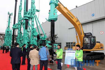 上海金泰邀請了來自全國各地的用戶代表和包括柳工集團工程機械產品經銷商在內的業界朋友和合作伙伴共計400余人,上海機電股份有限公司常務副總經理王心平和柳工集團總裁楊一川應邀前來表示祝賀,并在公司林堅總經理的陪同下參觀了產品展示現場。