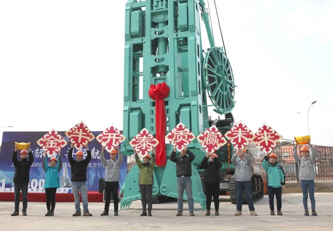 1月21日上午,微雨初歇、春意漸濃。以“新標高,再啟航”為主題的上海金泰第800臺液壓連續墻抓斗下線儀式在金泰本部舉辦。根據疫情防控要求,下線儀式未邀請外部用戶,也沒有組織大規模的聚集活動,由公司總經理黎隸萬、黨委書記陳雪英、公司高級顧問林堅、公司董事、副總經理兼營銷公司總經理徐峰、紀委書記工會主席陳月萍等公司領導帶領各條線負責人以及部分一線員工在金泰產品展示廣場共同見證了金泰第800臺抓斗下線及交付過程,整場儀式既簡約又隆重。